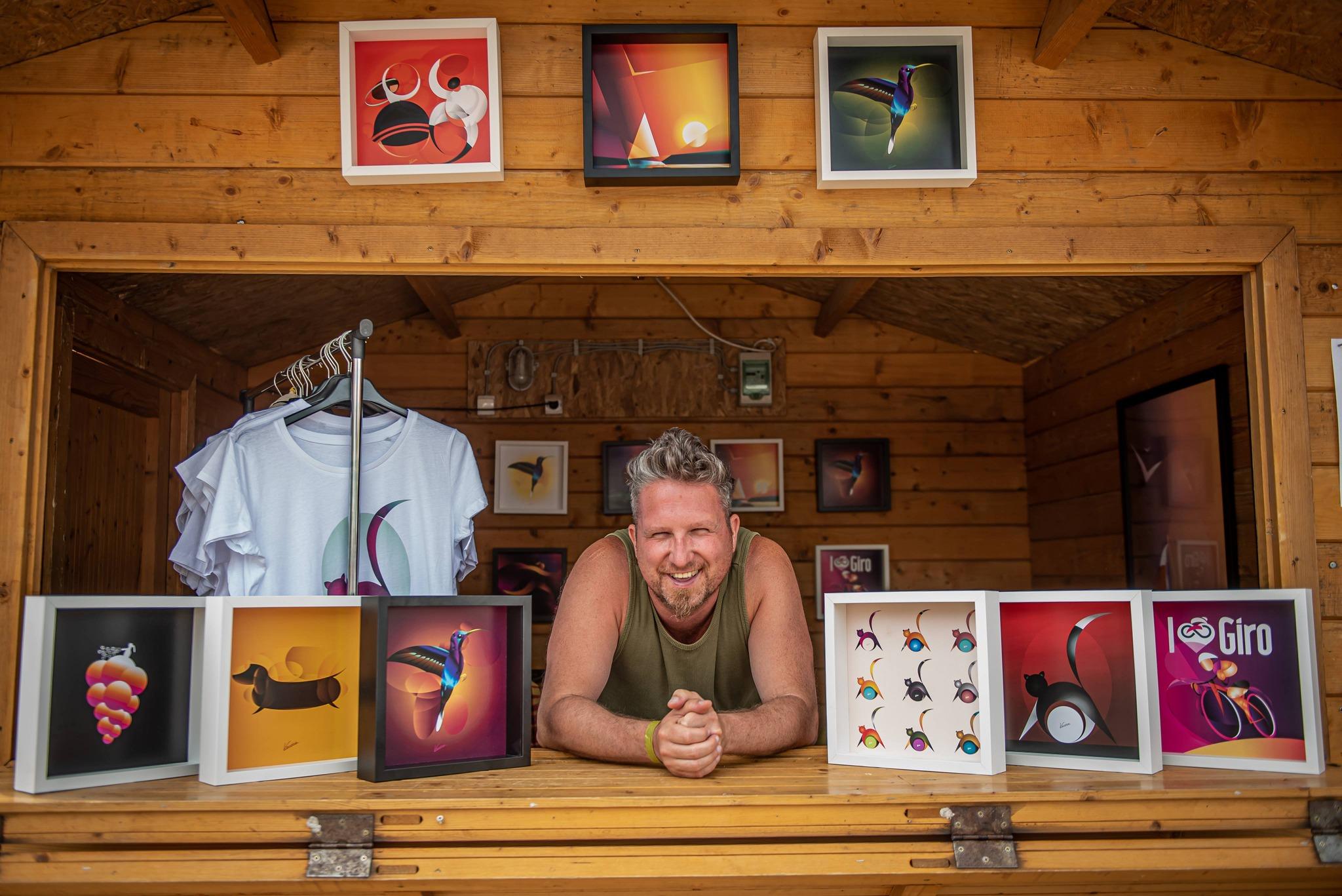 Azonnal papírt és grafit ceruzát ragadtam, hogy felskicceljem egy papírra. Egy perc múlva ott állt előttem a kész koncepció. Abban az időben már alapvető tervezési program volt számomra az Adobe Illustrator, nem is volt kérdés, hogy ezekből a geometriai formákból álló képet egy vektorgrafikus programban fejlesszem tovább. Fontos tudni, hogy tényleg nem a körökkel játszva – mint az ezt követő témaköröknél – több lépcsőben dolgoztam ki a figurát, csak le kellett követnem a szemem elé villanó kész koncepciót. Transzcendens élmény volt. Eldőlt, hogy a művészet ezen formanyelvében fogok alkotni a továbbiakban. Nem volt bennem kétely. Elküldtem a kész képet egy 60x80 cm-es vászonnyomat formájában. A zsűri az országosan beérkezett közel 600 pályaműből a TOP 3-ba ítélte Poszter kategóriában. Ez az eredmény egyértelmű jelzés volt számomra, hogy további képeket alkossak, eleinte maradva a Sport témakörénél, mely aztán sok más színes világot nyitott s nyit meg azóta is. Mindez egy nagyon izgalmas formai játék, melyet a színek intenzitása egészít ki, ekképp vegyülve egy vizuális varázslat tárul a szemünk elé. Ha mindez nem lenne elég, ahogy egyre több kiállításon szerepeltem, egy olyan effektussal találkoztam, ami feltette az i-re a pontot számomra.